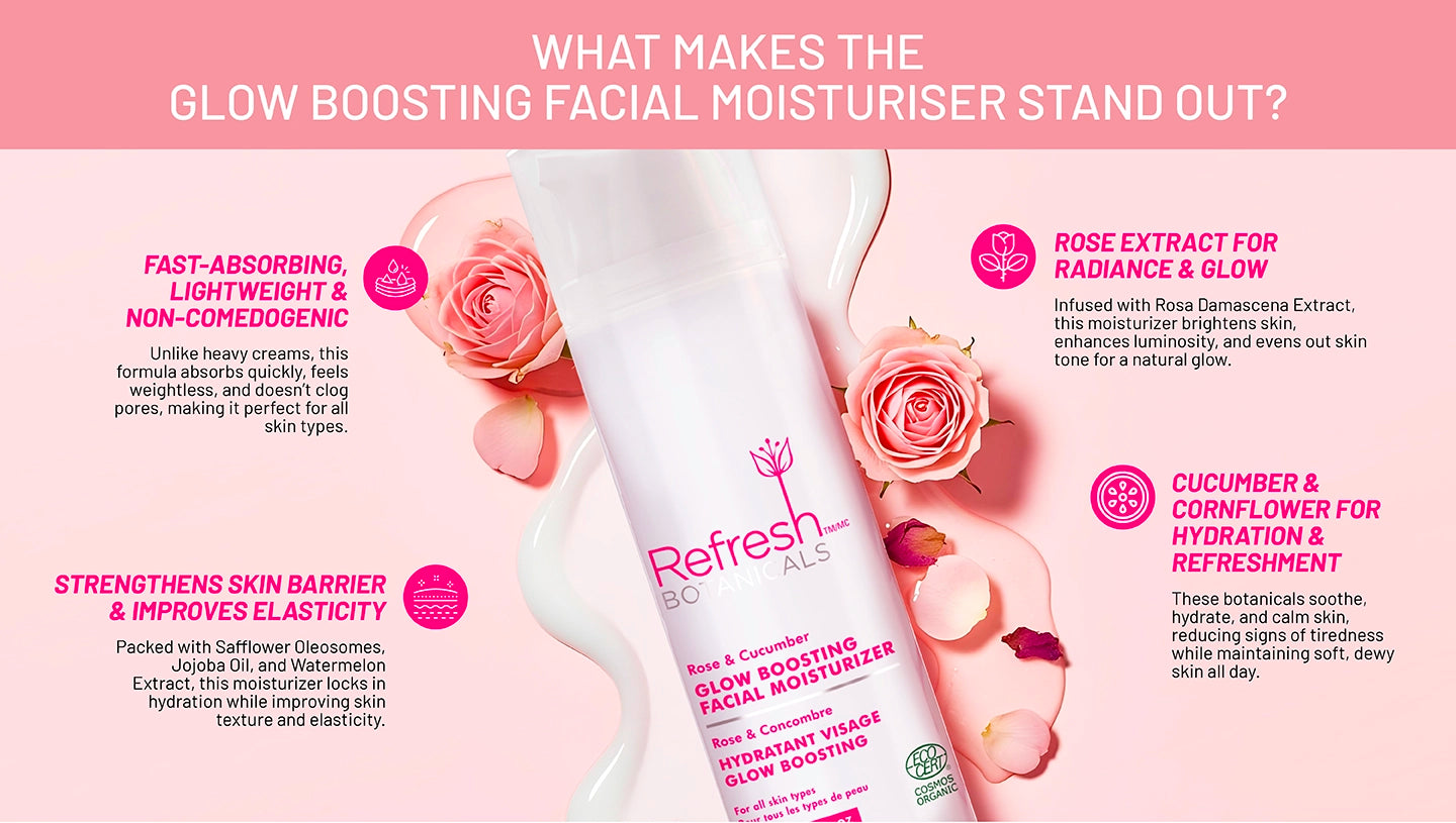 A lightweight moisturizer infused with Rose and Cucumber to hydrate, brighten, and enhance skin’s natural glow.